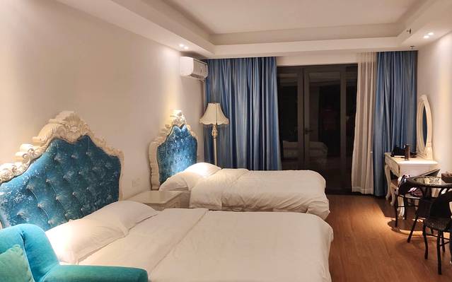 敏捷黄金海岸民宿至尊海景房,58平方米,2张1.5米的床,可住4人。