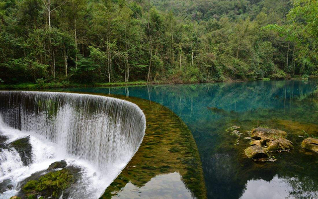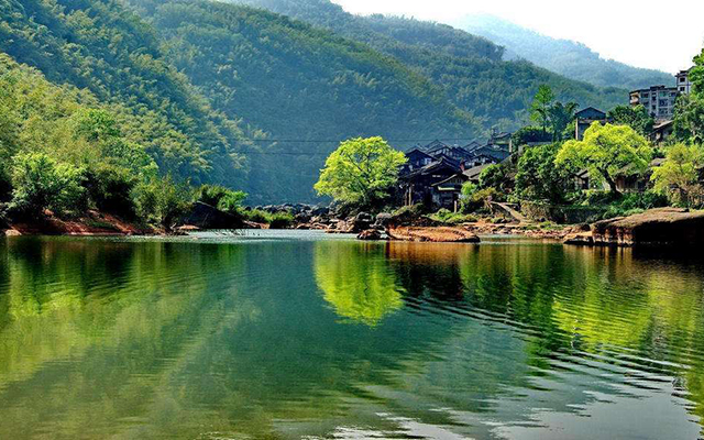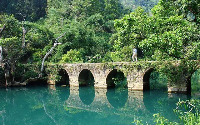 贵阳的小七孔景色非常优美,被当地人称为绿宝石,小气孔周围的溪水十分清澈,周边的树木倒映在水中,水天相接的美景,让游客沉醉不已。按照当地人的介绍,溪水成为小七孔的一部分,绿色的溪水与水底的矿物质有关系,这里还拥有着原始苗寨,都透着静谧美,站在远处眺望吊脚楼,苗寨风情浓厚。走在苗寨中时不时有小孩在一起打闹玩耍,小孩的天真烂漫让游客回忆起了过去。