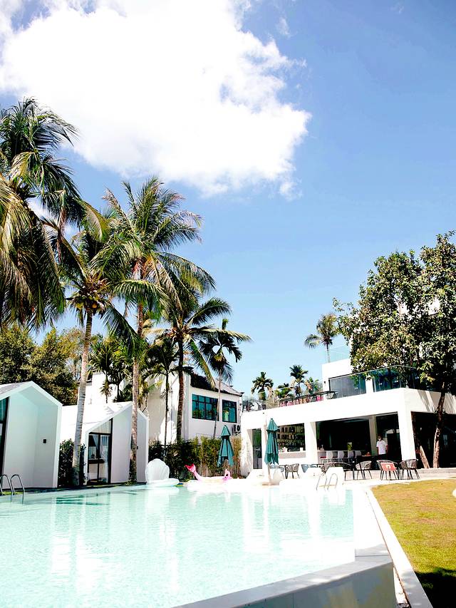 民宿的整体环境是网红ins风的白色系风格,纯白色的墙,简洁美,再加上高大翠绿的椰树的点缀,有点治愈,让人很舒服。除了椰树,院子里还有木瓜树、菠萝蜜树、莲雾树。老板人很好,说可以自己去摘,太可了。