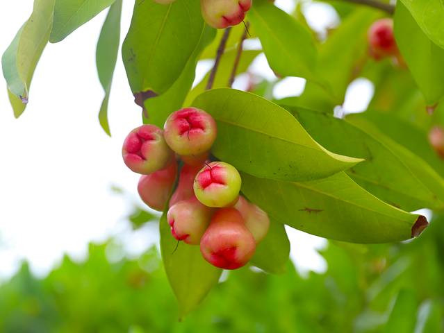 院中还种植了多种热带水果树,以莲雾居多,这个时候的莲雾有乒乓球大小,小小的蛮可爱。