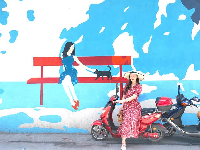 整个村落的房屋装修风格基本都是蓝白色的,看起来舒服治愈,很有圣托里尼的感觉,这是它吸引人的一个地方。行走在街道中,发现它是那么的安静,没有城市的喧嚣,随处可见墙壁上各式各样的涂鸦,风格都不一样,都是适合凹造型拍照的点。