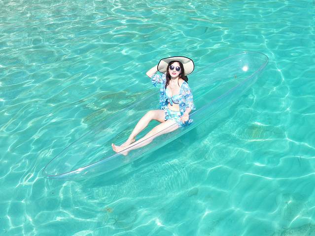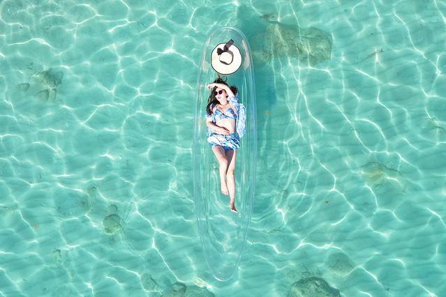上岛的第一个项目是航拍网红玻璃船。把墨镜帽子带上,可以做拍照道具。航拍出清澈带有水波纹的海水,美极了,不输给仙本那。如果你需要拍视频,拍前给教练说下就行。