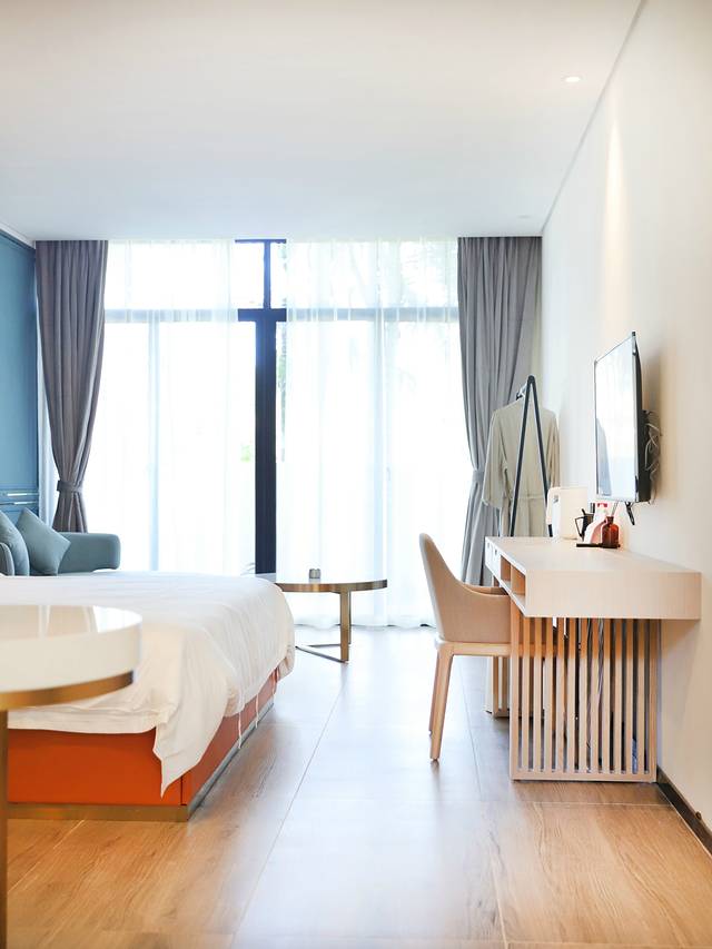我住的是一楼的晴峦轻奢大床房,房间设计装点的很温馨,空间够大,床品舒适干净,有一个大大的落地窗,早晨醒来,拉开纱帘,阳光照进来那个感觉,超酥服,光线也超级赞。