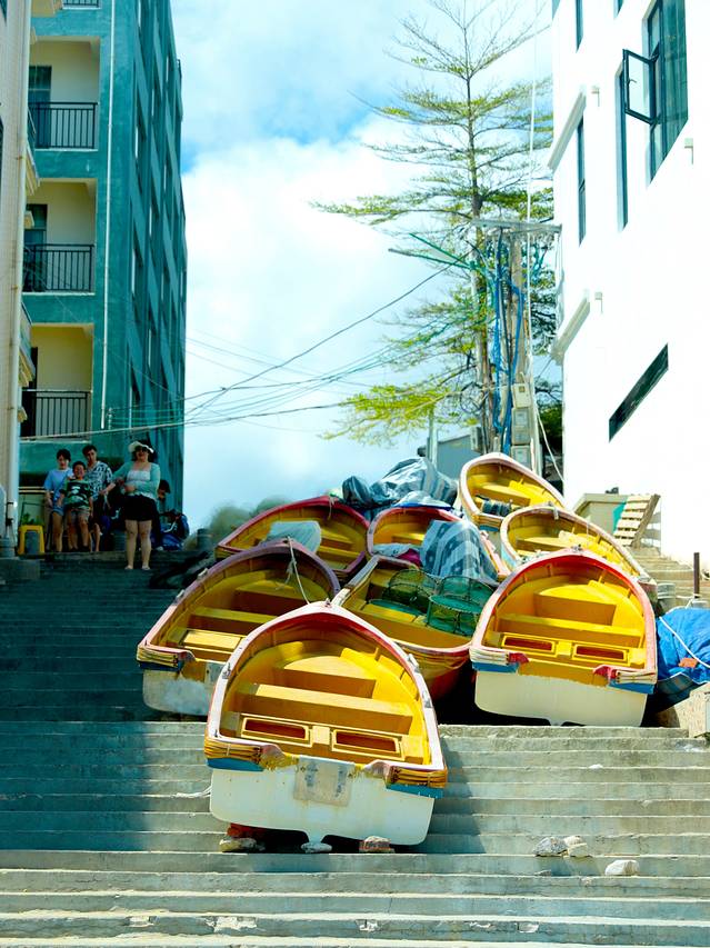 这里村民应该是靠打渔为生,在沙滩上,随处可见颜色漂亮的渔船,拍照很出片。