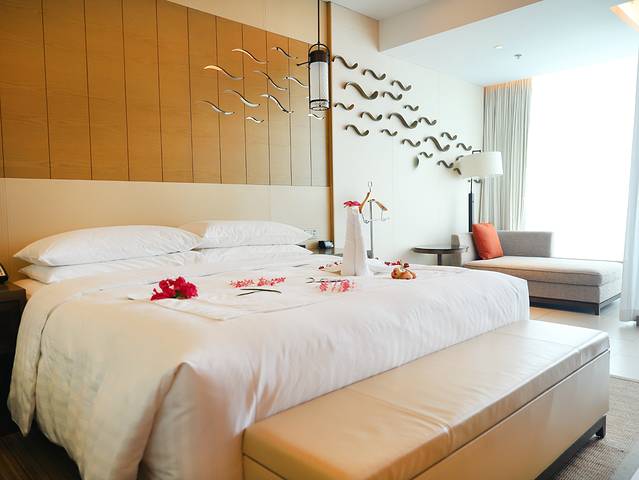 酒店的房型很多,我的房间是可180度赏海景的大床房,站在阳台就可以观赏一望无际的大海。