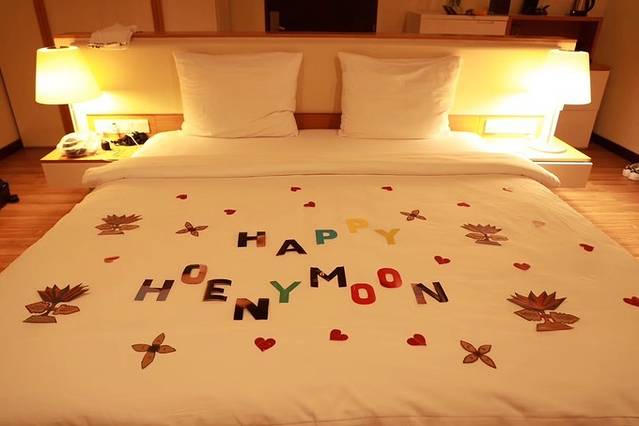 吃完晚饭回来房间已经帮忙做了honeymoon的布置,还放了瓶香槟。
