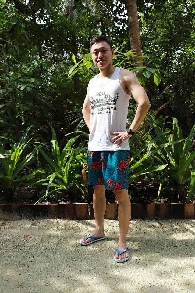 2.day2.多年的习惯又早早就醒了,昨夜是雷雨交加,海上的雷听的格外清楚,仿佛就打在耳边一样。后来听小李说,她在这工作两年没碰上过打雷,第一回就让我们敢上了。昨天下雨没下成水,今天终于放晴了,等不及吃早饭,简单洗漱了一下我就决定先下水游一圈,泳衣、泳裤、潜水表、手套、袜子、救生衣、面镜和脚蹼,都穿戴好便开始了第一次浮潜。水屋实际就是建在珊瑚旁,这种人类的建筑工程还是对珊瑚有影响,周围一圈都是死珊瑚,不过附近风浪很小,游到远处便有很多活珊瑚群,很多小鱼在珊瑚周围生活。第一次没敢游出太远,时间太早海水也稍微有一些凉,一刻钟左右就上来了,收拾下换了衣服,拿上相机边拍照边去吃早饭。