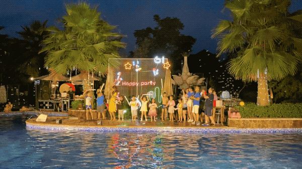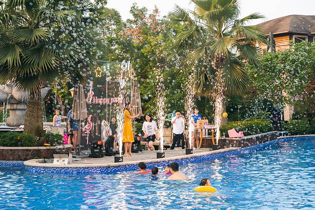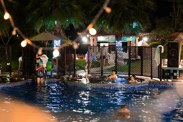 晚上小朋友们在泳池里耍累了,就换大人在泡池里放松了~