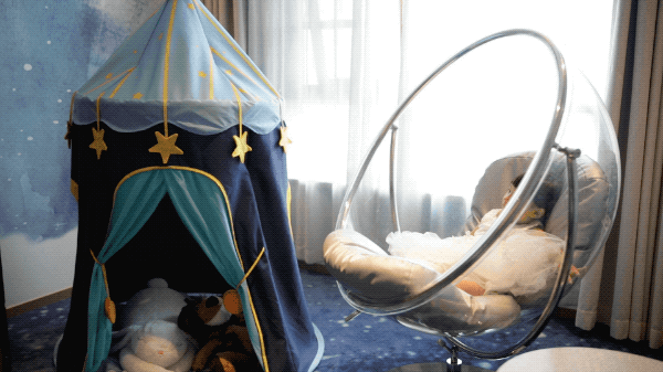 让小Eva最惊喜的就是这个星空套房,一进门跟上了发条一样。