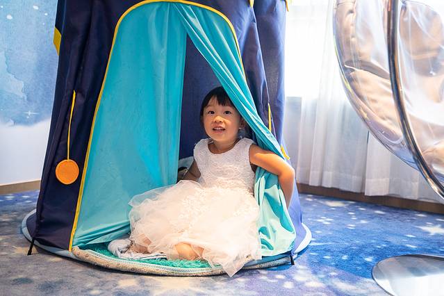除了亲子房本身很让小朋友喜欢之外,最让父母省心的还是这个S.O.团队(Smile Organizer 微笑组织者),目前有107个原创亲子活动,住店客人都可以参加。