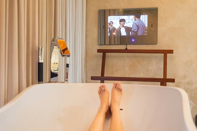 浴室的超大浴缸也是非常舒服,就算只是呆呆看着院子也感觉十分放松。