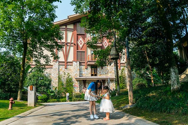 去的当天满房,大厅有很多小朋友。不过走到园区就瞬间感觉低密度,满目翠绿。