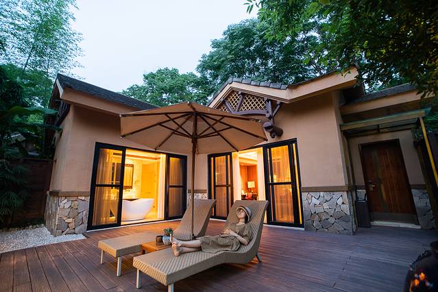↑左:驷马屋 右:豪华温泉水疗别墅