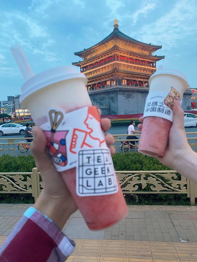 坐地铁去回民街的路上可以路过钟楼,我弟弟还请我喝了喜茶,嘻嘻!