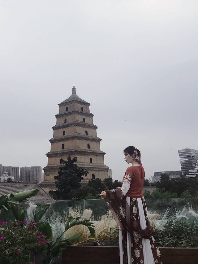 楼顶有一个观景平台,可以很好的拍到大慈恩寺。