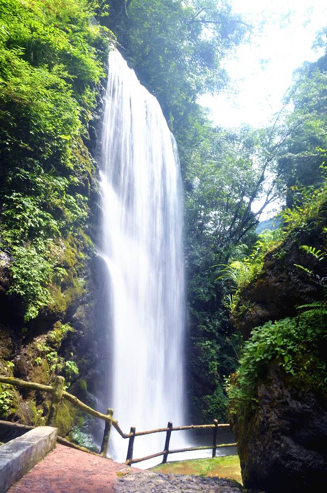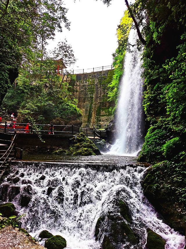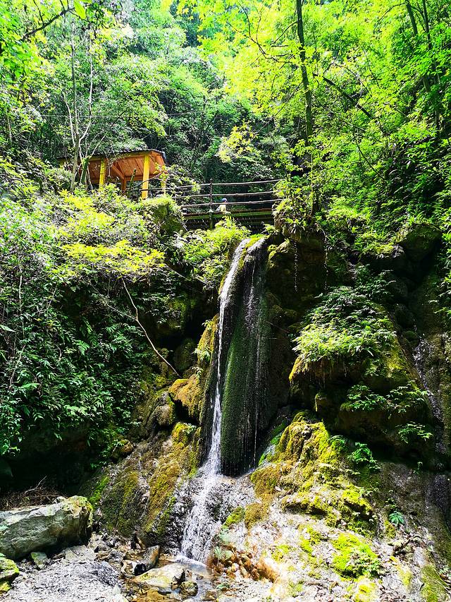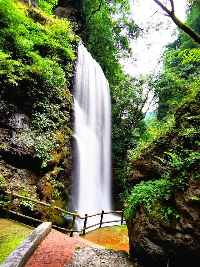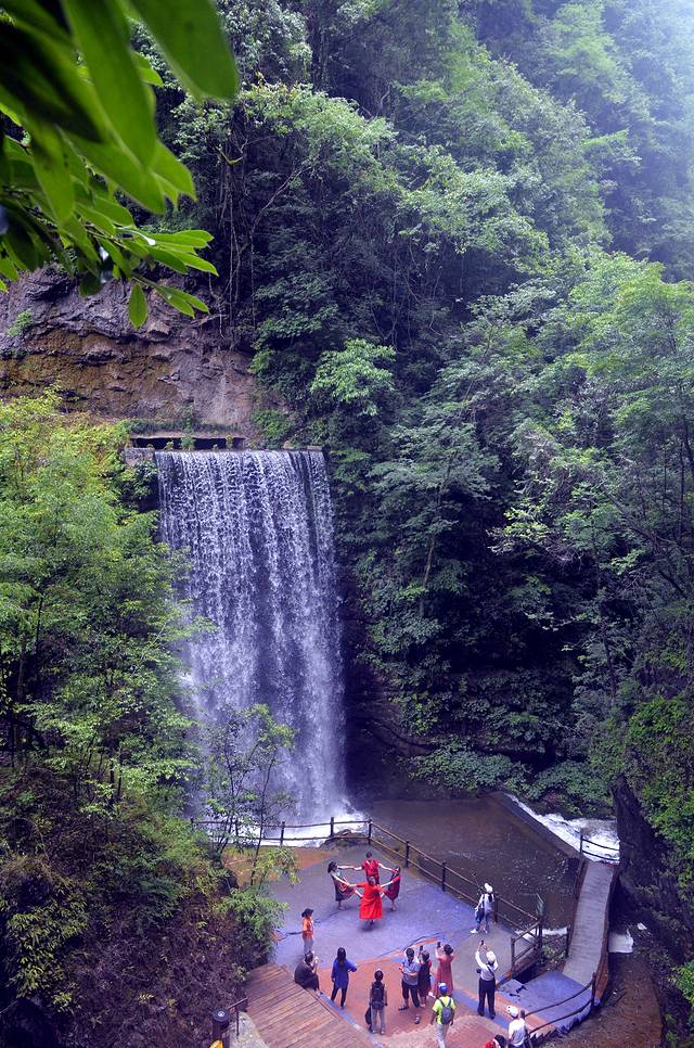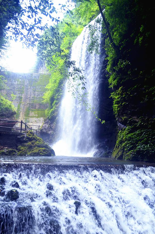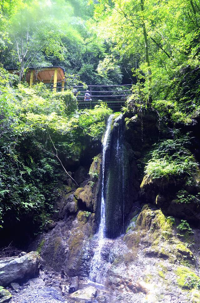 同时,这里的地下水资源特别丰富,常年流水潺潺,澄清可掬,饮用甘甜清凉,有“小九寨”之称,景区内最核心的景点就是两处高80多米的天然瀑布,以及大小瀑布共有十八瀑,特别是落差80米高的瀑布显得尤为壮观。