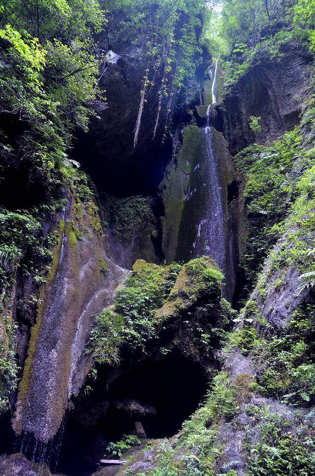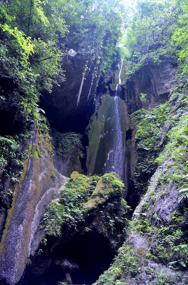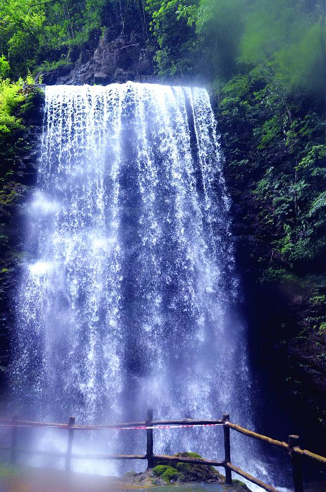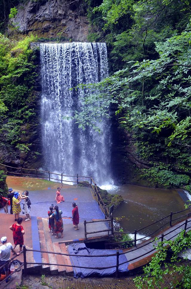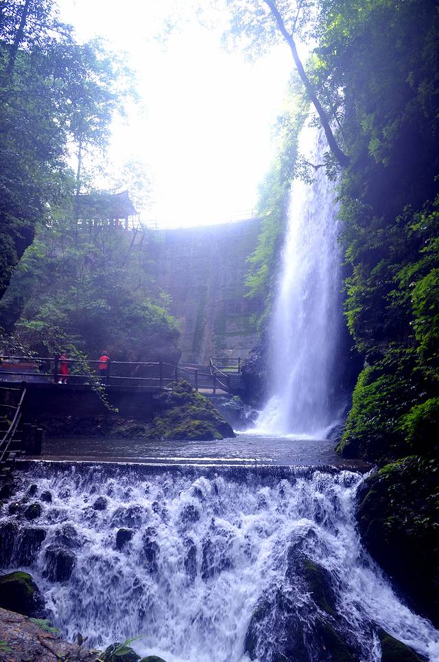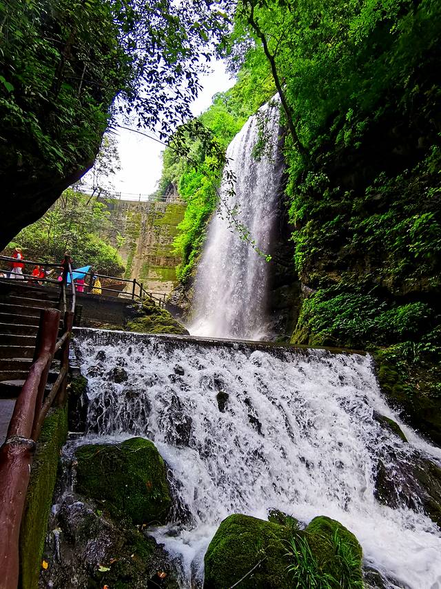 同时,这里的地下水资源特别丰富,常年流水潺潺,澄清可掬,饮用甘甜清凉,有“小九寨”之称,景区内最核心的景点就是两处高80多米的天然瀑布,以及大小瀑布共有十八瀑,特别是落差80米高的瀑布显得尤为壮观。