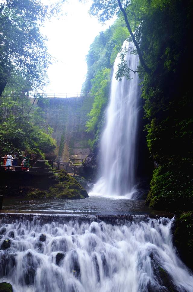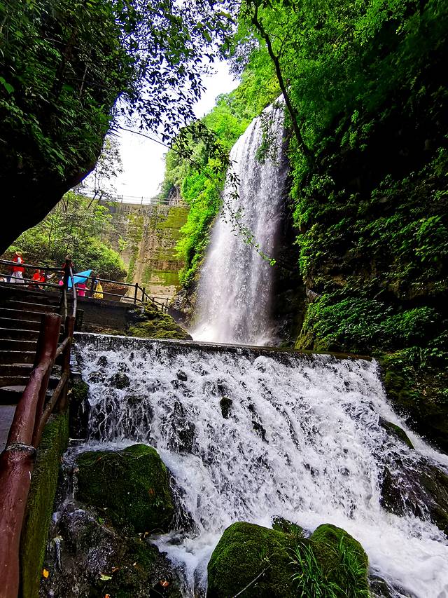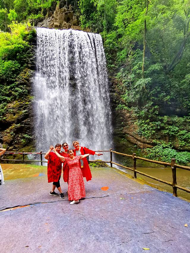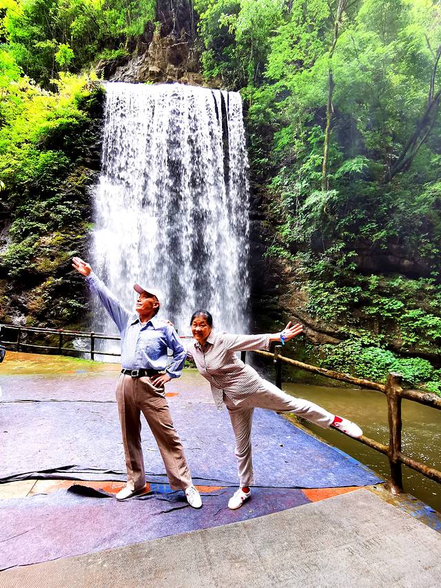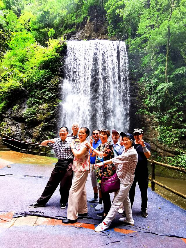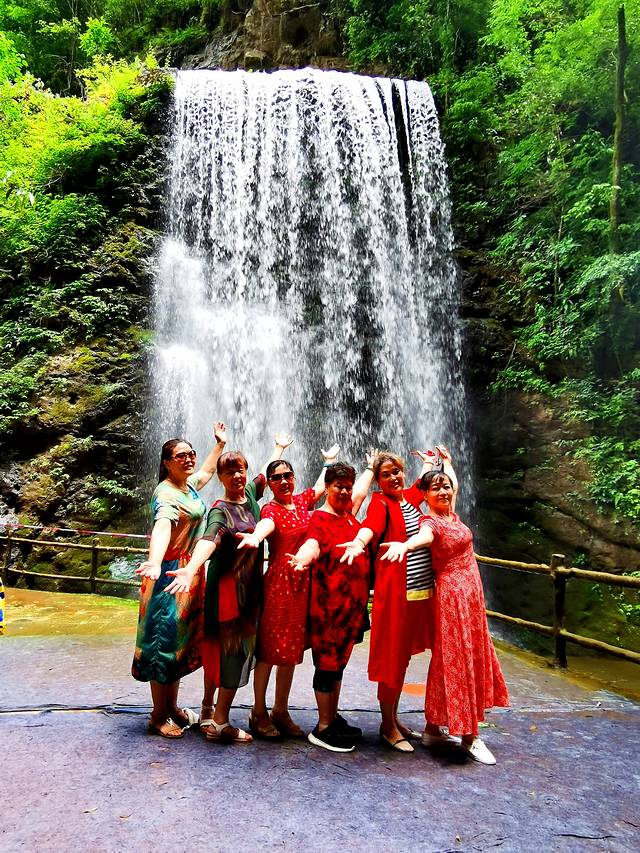 穿密林,寻楠木王,游完女儿湖,不一会便来到了核心景区,落差约80米高的瀑布前,大家都被眼前的瀑布吸引了,纷纷拍照,录影,有的快的就直接发抖音、快手,将快乐和美景分享给亲朋好友。