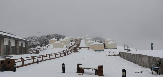 到达景点后,吃了碗煮得稀烂的抄手直接买了门票坐大巴上山,尽管疫情刚好一点,但人还是很多的。要去爬山的胖友们真的要小心,这边山下和山上气温和天气差太大了,随着大巴往山上走,慢慢地从蓝天白云变成了大雾和大雪,山顶积雪几厘米厚,到山顶后大巴司机把我们丢在下客处说让我自己往前就能看见山顶接待处,结果接待处关着门也没有任何指示牌,自己踩着雪在冰天雪地里找了好久才找到。自己屁颠儿屁颠儿去弄帐篷,太冷了,帐篷拉链都被冻住了,艰难。