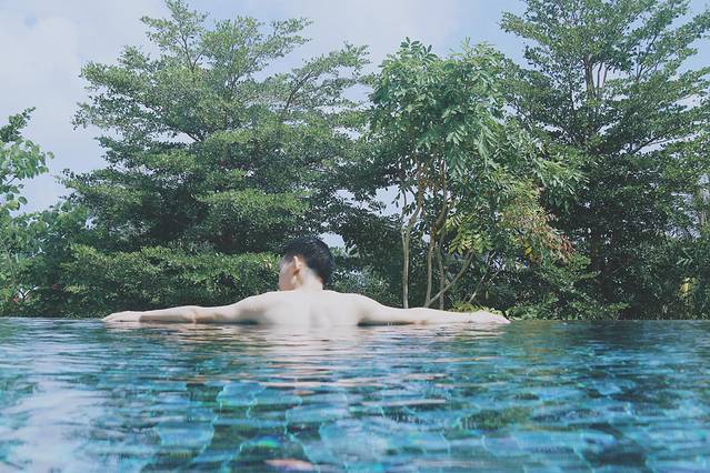 看到很多世界各地绝美的无边泳池,总觉得遥不可及,这次可以放肆的打卡一下迎宾馆无边海景独栋别墅区270°的无边泳池了,承包了正片蓝天白云。