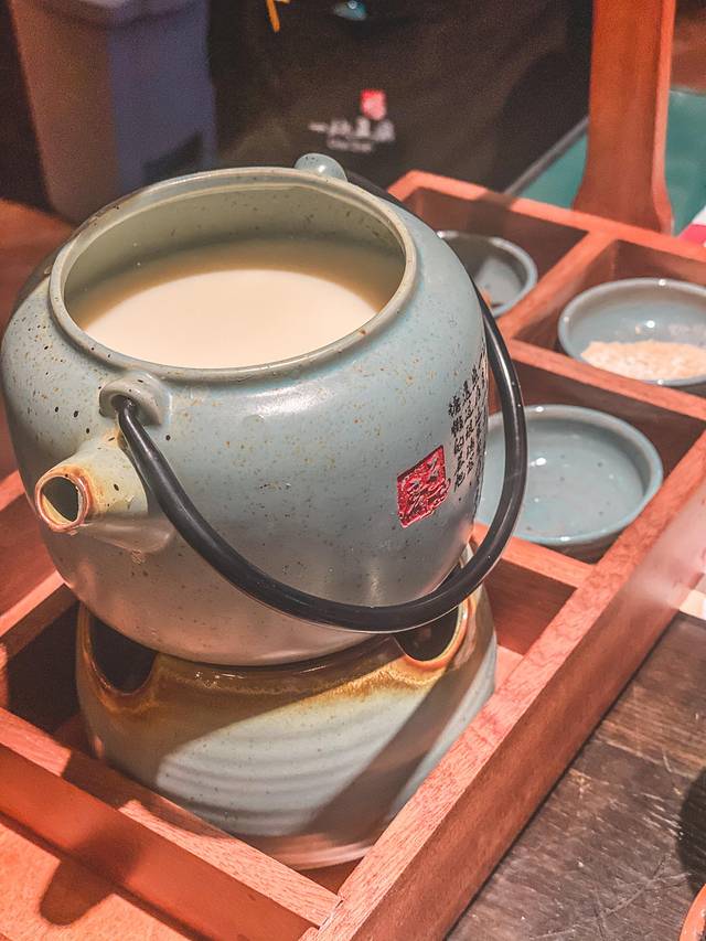 浓浓豆浆上桌坚持加热保温,配备四款养生辅食,每壶一句诗词奉上。【手工石磨一块豆腐】 配料仅有水与黄豆,宫廷古法工艺唤醒你的“童年味道”质地细软绵密、豆香十足,一水一豆,简单健康。经过石磨碾制、人工过滤、手工挤压、卤水点脑等传统工艺制作的豆腐白嫩、细软、味纯、入口即化,是不可多得的极致味蕾体验,且保留了极高的营养价值,搭配秘制蘸碟,活色鲜香。【一绝酱鸭】:鸭肉肥美不油腻,微甜可口,酱香浓郁,不负一绝之名。