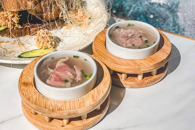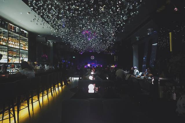 靠窗而坐,你能看见一线海景和游艇;喜欢音乐,那可以去舞台下方感受现场表演的魅力。入坐吧台仿佛闯入了酒精实验室,能看到成排的酒品和调酒师调酒。