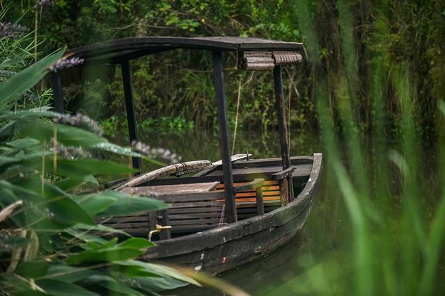 大雨终于停了下来,气温似乎也降低了一点点,至少比下雨前的闷热要缓解不少。当你坐在橹船上游览西溪湿地的风光,你会发现西溪湿地的里面隐藏了很多仙境般的秘境。