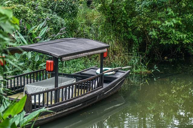 虽然说西溪湿地悦榕庄与悦椿是两家独立的酒店,但是属于同一系列,基础设施可以共享。无论是住在悦榕庄还是悦椿都能享受该酒店仅有的游船码头。