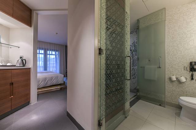 客房格局、功能以及硬件方面都很人性化,卫生间的两个门都可以与房间互通且两门互不干扰,这样既保证了浴室可以使用的同时洗手间可以让同伴使用而不会尴尬。这种设计还是很赞的吧?这种设计与格局,山野君很喜欢,所以连续了好几个晚上。