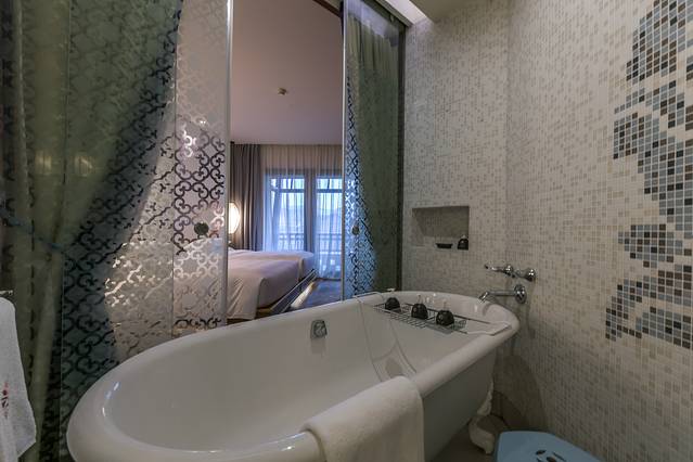 刚开始我还以为住进了悦椿酒店就不能进入悦榕庄所属的园林了,问询得知无论是住进悦椿还是悦榕庄的客人都可以在悦榕庄片区游玩。可是悦椿才600多元房费而悦榕庄2000多元房费,差距还是不小的。除了客房设施待遇不一样之外,其余的公共区域设施可以共享。是不是很人性化?