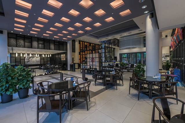 与其他五星级酒店一样,服务水平都是一流的,这个就不用赘述过多了。前台前方的空间就是客人休息大厅,虽然整个大厅汇聚了餐厅、休息厅、前台、礼宾部等诸多片区,但是设计科学、布局合理,感受不到有意思的拥挤与突兀,这一点山野君非常喜欢。