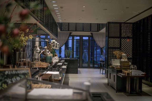 这里就是西溪悦椿的餐厅了,一般用作自助早餐,还可以用作喝下午茶以及特色餐饮的功能。装修风格方面采取高贵气息的冷色灰,格调高雅且不失温馨的氛围。