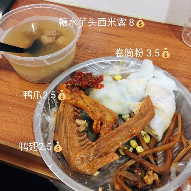 路边有卖零食的,什么鸭爪啊,肠粉啊,螺狮粉啊等等。我们还去吃了卷筒粉,第一次吃。价格还很便宜。卷筒粉有两种选择,玉米或者纯肉。本来以为肉的会最好吃,但我们吃了后发现还是玉米的更好吃一些。