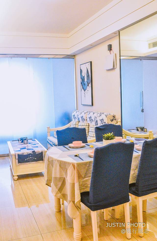 这家民宿位于鸿洲广场内的小区,室外环境安静安全,有保安24小时值班,两个房间都是海景房,躺在床上就能欣赏窗外海景~房间是木地板搭配白色的大床和柜子,柜子一摸就知道材料高级,床铺是和木地板相得益彰的咖啡色(ps一句:之前看到有人说床品很高级比酒店还舒服,我还觉得有点夸张,但没想到真的是!床单被褥都好柔顺好滑)
