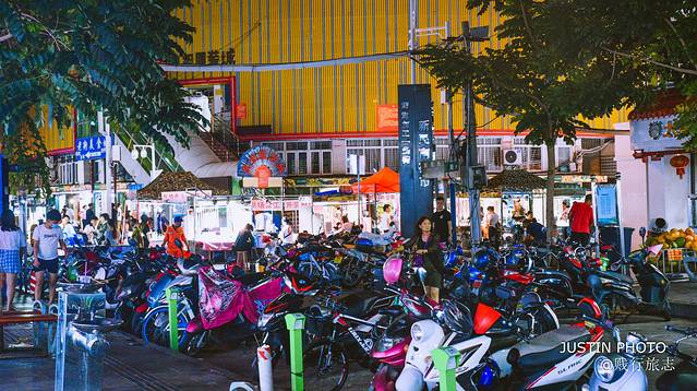 在 三亚 市内的夜晚下车水马咯,路灯显得格外亮眼。人流量也比较多的地方,在这里也常会见到骑着小电炉的情侣们,这种感觉十分美好。