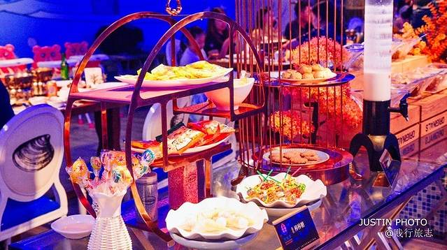在这里,你可以看到各国美食犹如孔雀开屏般在展示台上铺开,光是虾和蟹都各有好几个品种,以及各色贝类、鱼类、肥牛、蔬菜等,让人挑花了眼,熟食也不遑多让,从西式的牛排,到日式的寿司,再到中式的干蒸,任君选择。
