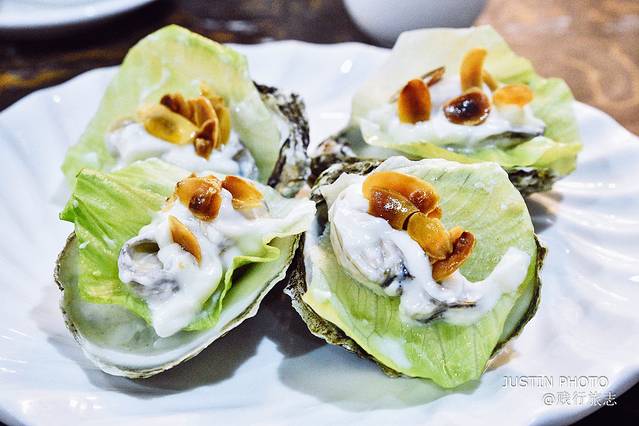 沙拉 生蚝,十分洋气做法,第一次发现 沙拉 酱和生蚝这么搭,加上一片新鲜生菜解腻,质感软嫩。