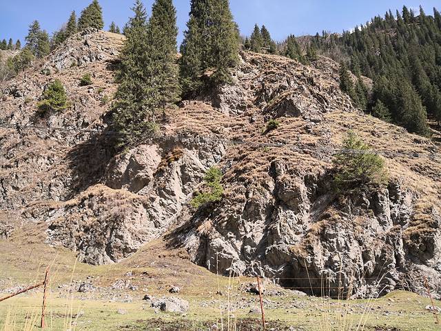 松树长在悬崖上了。