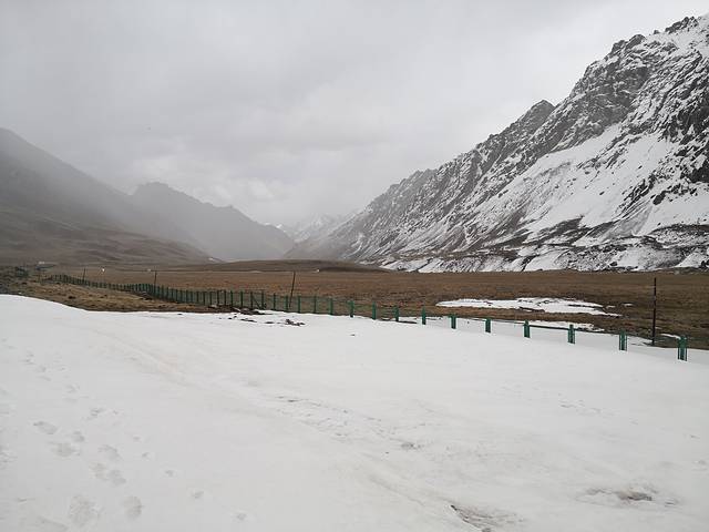翻过栅栏就可以到达雪山跟前。