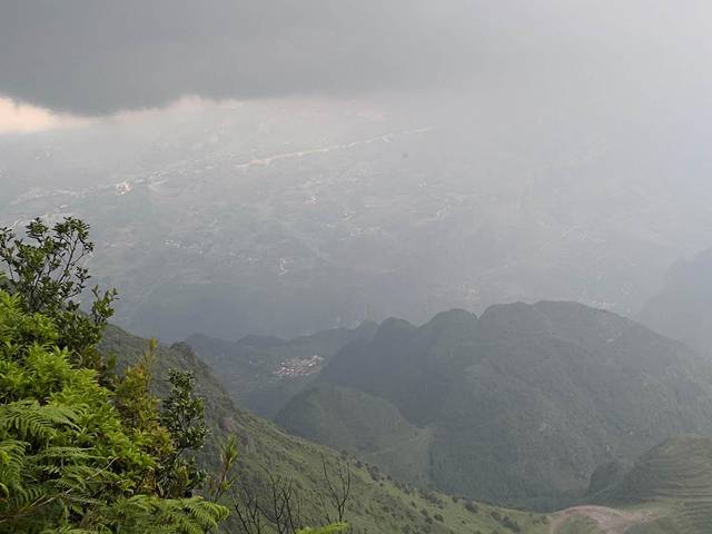 我们到达山顶之时已是乌云密布,雷声滚滚,大雨随时就要下来。踏着茂密的草坪走到山边,底下已是万丈悬崖,一眼望不到谷底,站在山边远眺,周边群山环绕,云雾弥漫,天边的乌云形成一道道彩虹挂在山峰之上,远处的普利大桥和北盘江大桥若隐若现,犹如通往天边彩虹的通道。