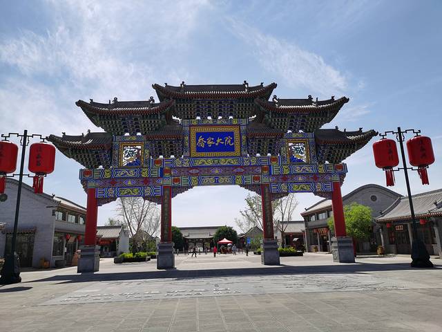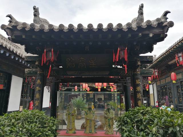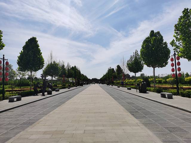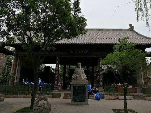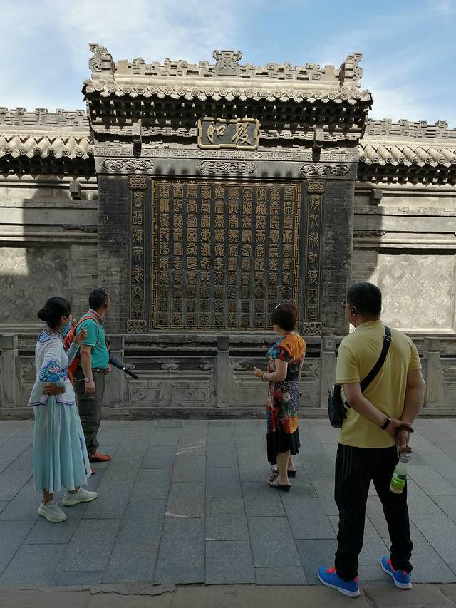 从停车场出来,经过一条商业街,有小商品店,餐馆,有家在网上能热搜的老店,门面看着大气有特色,后悔在外面吃了饭,建议外来的朋友多做点功课。疫情期,游客很少。出了商业小街,转至大牌坊,拍个照再前行至景区入口,购票刷票,沿着宽敞干净的大道,路边是仿真雕像。下午顶着烈日无处可躲的步行到百寿砖雕影壁前,才算是真正的景点游览。