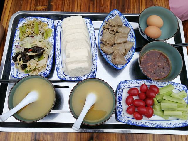 去哪儿网订的不含早餐房,老板居然提供了免费的早餐,而且早餐是老板妈妈一大早亲自做的,准备早餐的过程中没有一丝的动静而影响到客人的睡眠。看着精心准备的早餐让人胃口大开,自制的栲栳栳,特制的蘸料,清爽的小凉菜,配上精致的餐具,好吃到停不下来。。。