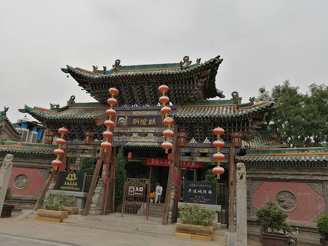 平遥城隍庙的临街庙门之外,是寺庙标志性建筑——高大的木结构牌楼,为四柱三门十一踩斗拱规制的歇山顶建筑。牌匾额书"城隍庙"三字,系当地著名书法家赵望进先生之笔。
