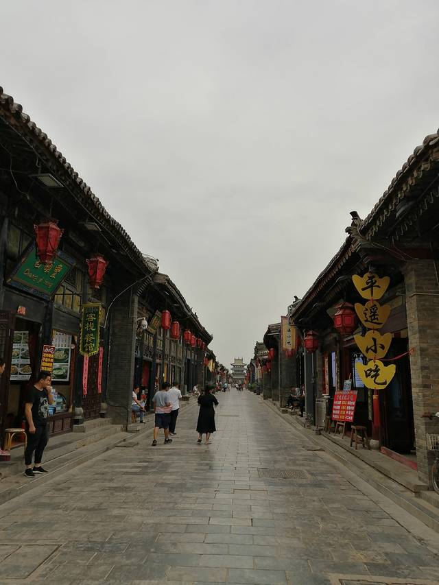 文庙的出口出来就是东西门相通的大街,沿街步行观光,与城隍庙等景点相连。发现平遥的旅游观光车街上很多,司机都很热情,主动前邀载客,承诺一口价平遥景点全程跟班。或许疫情期间游客太少,如果只是想坐车围绕古城转转可以选择观光车。
