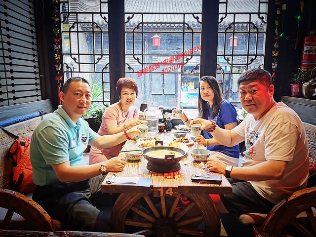 7:30早餐后出门,按照地图逛遍了城内的所有景点,因入城必须购买的门票已包含各大景点,一天下来计步器显示近30000步。就像嫂子说的,感觉腿已不是自己的了。晚餐都打算放弃,慕名而来古城,不易啊,【桃花面】喝二杯去!带上一瓶红酒,几瓶青岛啤酒,点上好吃的特色菜,为愉快的旅行干杯!晚餐还是只有我们一桌,和老板畅聊,品尝了他的自制醋和竹叶青原浆,餐后打好包将要带回青岛。老板人好,做的菜美味可口价格又不贵。平遥古城之行,我们遇到诚信可嘉的商家,让山西之行得已圆满。
