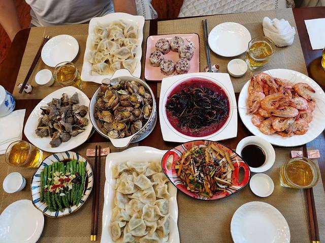 返青途中到达河北省邢台市清家沟服务区休息。这个服务区真好,依山而建,空气清新啊。餐厅有自助饺子,每位20元不限量。对于爱吃饺子的二位哥,可真是意外的惊喜啊。一群大姐们现场手包饺子现煮,各种菜馅随意点,虽然吃不到多少肉但味道挺好。