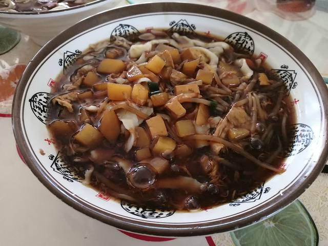 从菩萨顶下山到达乔家大院跑沧榆高速270公里四个多小时,在乔家大院景区不远处,因不熟悉地形,途经几家面馆看着停车方便,正好午餐时间便下来,尤其是有二位特别爱吃面的人,哈哈。。。没想到,叫人特别失望。山西之行最难吃的一顿饭也是最难吃的面。原来以为,在山西的任何一家面馆都能吃到好吃的面,旁边一桌一男一女提前结帐,撂给了老板娘一句:你们做这样的面给客人吃真是丢山西人的脸啊!!!嗨,这话我也想说,难道在著名景区旁边做生意,不求你回头客是吧?!别忘记,网络的力量,口碑最重要!
