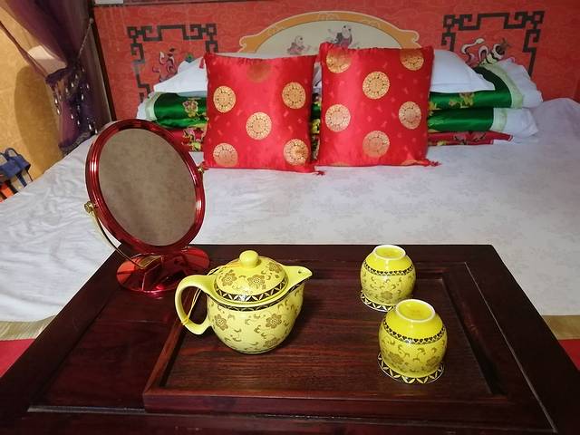 连住了二个晚上,房间名字的寓意都非常的棒【良辰美景】和【天长地久】。看,明清特色土炕房,靓丽的床幔,大红大绿的被褥,软硬适中的炕垫,干净的卫生间,安静的夜晚,足以让你饱睡到自然醒。。。