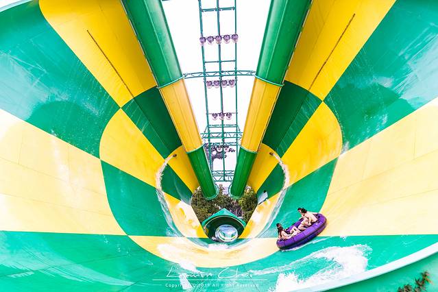这应该是整个园区里面惊险程度最高的项目了,没有之一。从高处穿越明暗交替的隧道,感受超极速带来的刺激感,然后就被卷入了巨大的漩涡中心,感受丛林龙卷风带来了畅快的失重感,这尖叫声真的是不绝于耳,绝对是整个园区内分贝最高的场地了。