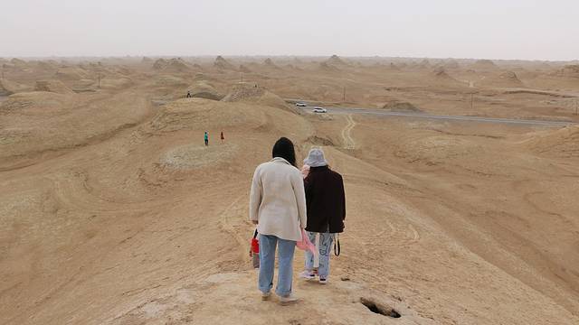 “雅丹”在维吾尔语中的意思是“具有陡壁的小山包”,但事实上这些“小山包”对我们普通人来说可不小。想看到魔鬼城的全貌,一般需要爬到地势较高的地方才行。